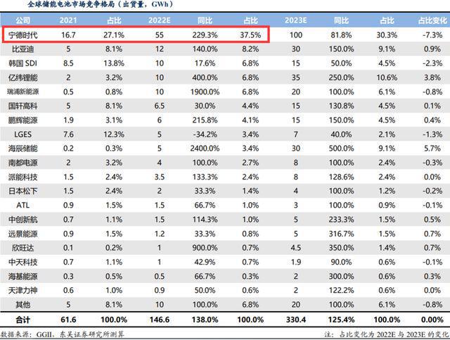 在儲能制造業(yè)的最后一環(huán)——產品端,類似光伏行業(yè)的一體化組件企業(yè),其特點是“一超多強”,或者說是一超多不強,寧王一家獨大。