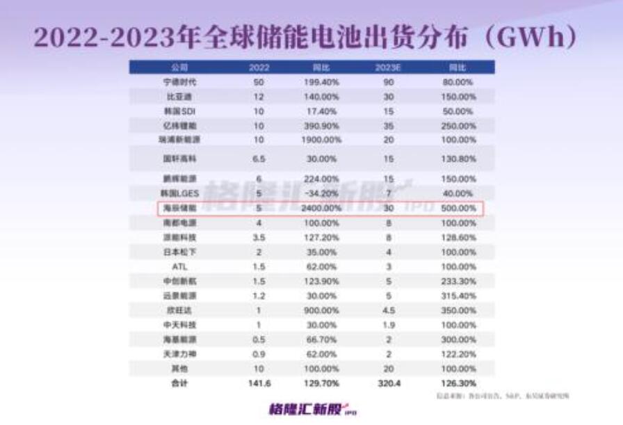 海辰儲能相關(guān)人士曾在采訪時表示,預(yù)計2023年將維持較高的增速,預(yù)期全年出貨量突破25GWh,旨在保持中國電力儲能電池交付量第一,并爭取在出貨量排名中躋身前三。