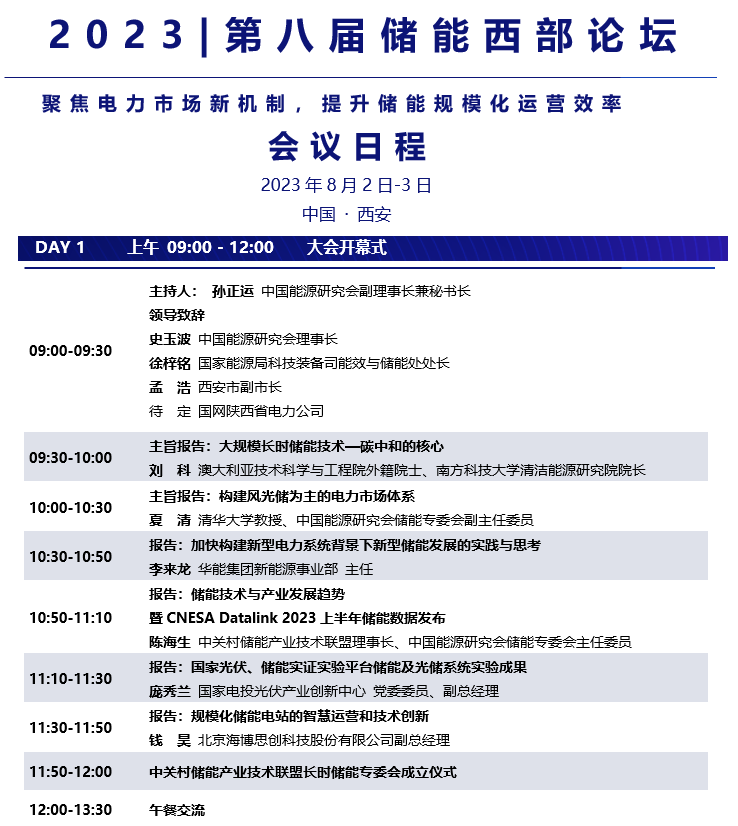 由中國(guó)能源研究會(huì)、中關(guān)村儲(chǔ)能產(chǎn)業(yè)技術(shù)聯(lián)盟聯(lián)合主辦的第八屆儲(chǔ)能西部論壇將于2023年8月1-3日在西安舉辦,同期將發(fā)布中國(guó)儲(chǔ)能產(chǎn)業(yè)半年度數(shù)據(jù)。