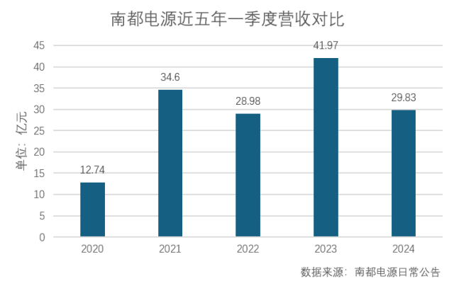 作為全球儲能系統(tǒng)出貨量頭部企業(yè)之一,南都電源于2024年4月24日正式發(fā)布第一季度業(yè)績公告,公告顯示,2024年第一季度營收約29.83億元,同比減少28.93%。歸屬上市公司股東凈利潤約8259萬元,同比減少18.34%,營業(yè)收入及凈利潤雙下降!
