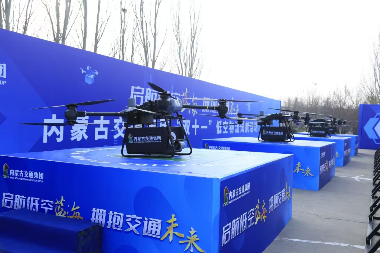 11月11日,內(nèi)蒙古交通集團(tuán)“啟航低空藍(lán)海 擁抱交通未來”——“雙十一”低空物流試航活動在呼和浩特市舉行。