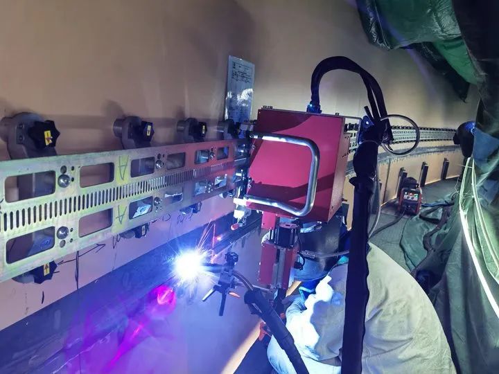 在三澳核電項目,智能激光跟蹤MAG自動焊技術覆蓋鋼襯里底板、筒體到穹頂車間預制和現(xiàn)場安裝的全流程系列化、多工況場景的全面應用,形成了具有完全自主知識產權的鋼襯里建造高效智能焊接先進技術體系,具有顯著的經濟社會效益。三澳核電一期項目累計焊縫長度約3763m,共拍片2930張,一次合格率為97.2%,焊接質量穩(wěn)定。