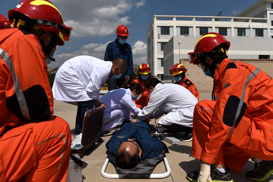 同時,成立了1支應(yīng)急救援基干分隊在物資部院內(nèi)處搭設(shè)兩座防震帳篷,安裝照明設(shè)施,對立即按照現(xiàn)場指揮迅速救出被困人員、轉(zhuǎn)運傷員并對傷員開展了緊急救護。