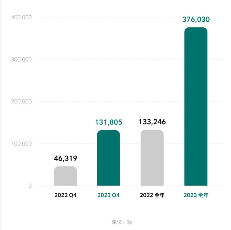 理想汽車扭虧為盈的背后是交付量的強(qiáng)勁增長(zhǎng)。2023年,理想汽車交付新車37.6萬(wàn)輛,同比增長(zhǎng)182.2%,超額完成年度30萬(wàn)輛的交付目標(biāo),奪得2023年新勢(shì)力“銷冠”。其中,四季度交付13.18萬(wàn)輛,同比增長(zhǎng)184.6%,超此前交付指引。