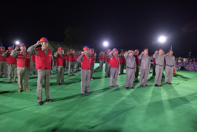 2022年9月15日22時30分,荊州文旅區(qū)220千伏遷改項(xiàng)目“三跨大會戰(zhàn)”,“共產(chǎn)黨員突擊隊(duì)”誓師大會現(xiàn)場人頭攢動,施工團(tuán)隊(duì)統(tǒng)一著裝,個個精神抖擻,排列方陣,整齊劃一,重型施工機(jī)械有序排列,蓄勢待發(fā)。