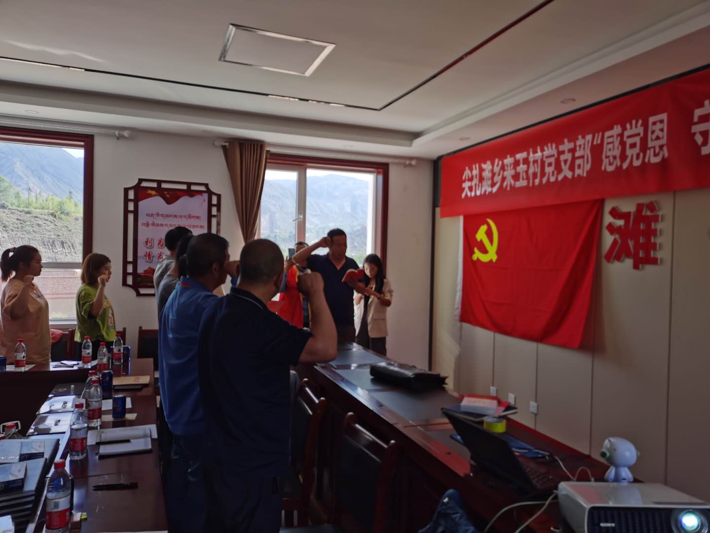 在尖扎來玉村黨員活動室內,兩支部全體黨員在來玉村黨支部才讓加書記帶領下,面對黨旗,高舉右拳,用藏語和漢語兩種語言重溫入黨誓詞。雖然語言不同,但是每名黨員口中喊出的錚錚誓言,字字句句,神圣而豪邁,依舊強烈震撼著每一位黨員的心,更加堅定了大家“對黨忠誠,積極工作,為共產(chǎn)主義奮斗終身”的理想信念。宣誓結束后,兩支部全體黨員、認真觀看了愛國主義紀錄片《紅色氣質》,通過紀錄片的介紹,使全體黨員進一步了解了黨99年的光輝歷程,同時珍惜得來不易的和平、幸福的生活。紀念這段歷史是為了讓廣大黨員知道今天的幸福生活來之不易,為了明天的美好生活,作為新時代的黨員還需加倍努力。