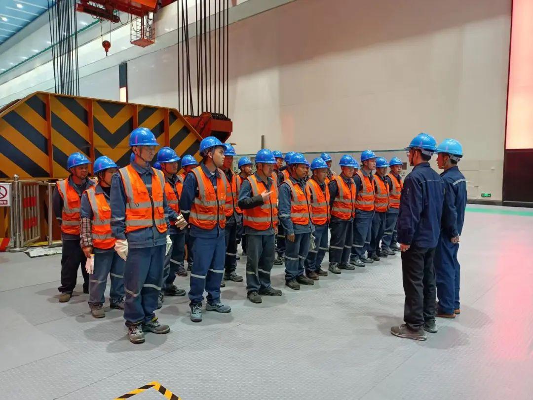 事關(guān)安全生產(chǎn),反復(fù)強(qiáng)調(diào)再多次都不為過!當(dāng)天上午08:55,當(dāng)參與吊出作業(yè)的人員陸續(xù)到齊后,總指揮陳宇現(xiàn)場(chǎng)主持召開了起吊啟動(dòng)會(huì),再次明確各單位職責(zé)分工,并組織參吊人員認(rèn)真進(jìn)行安全技術(shù)交底,希望全體人員凝心聚力、振奮精神,確保本次轉(zhuǎn)子吊出工作安全有序完成。
