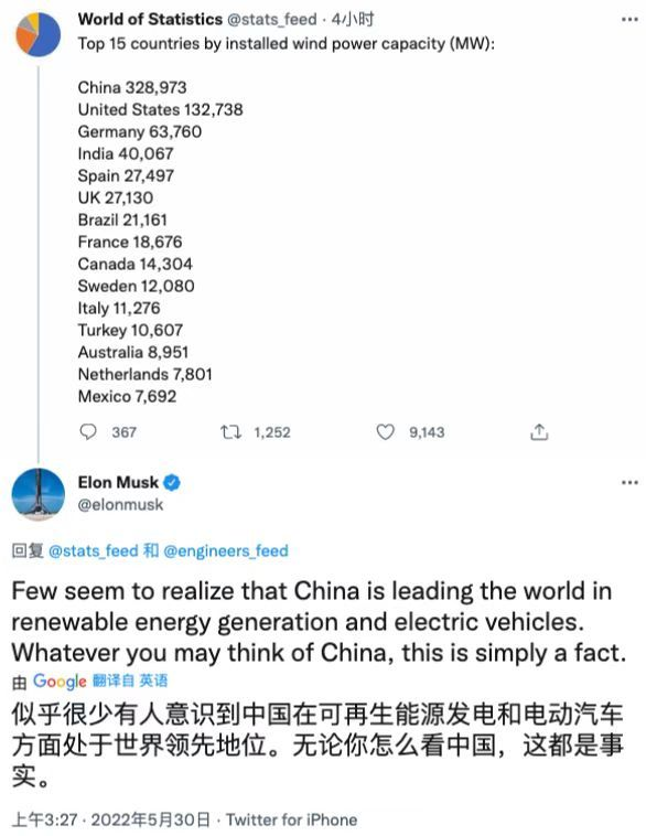 5月30日消息,特斯拉公司CEO埃隆·馬斯克回復網(wǎng)友時表示,似乎很少有人意識到中國在電動汽車和可再生能源發(fā)電方面領(lǐng)先世界,這是事實。