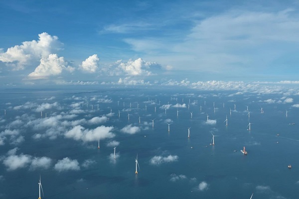 風(fēng)從海上來。北部灣海上風(fēng)能資源豐富,開發(fā)潛力巨大,是近年來我國海上風(fēng)電開發(fā)的熱土之一。作為我國西南地區(qū)首個海上風(fēng)電項目,防城港海上風(fēng)電示范項目是北部灣千萬千瓦海上風(fēng)電基地的開篇之作,項目包括A和F兩個場址,規(guī)劃裝機(jī)容量180萬千瓦,總投資約245億元。其中,A場址規(guī)劃建設(shè)83臺單機(jī)容量8.5兆瓦及以上風(fēng)電機(jī)組,近日已完成79臺風(fēng)機(jī)吊裝,其中65臺已并網(wǎng)發(fā)電,累計發(fā)電量突破5億千瓦時,相當(dāng)于減排二氧化碳45萬噸,成功申領(lǐng)廣西首批海上風(fēng)電綠色電力證書,項目經(jīng)濟(jì)效益和生態(tài)效益顯著。
