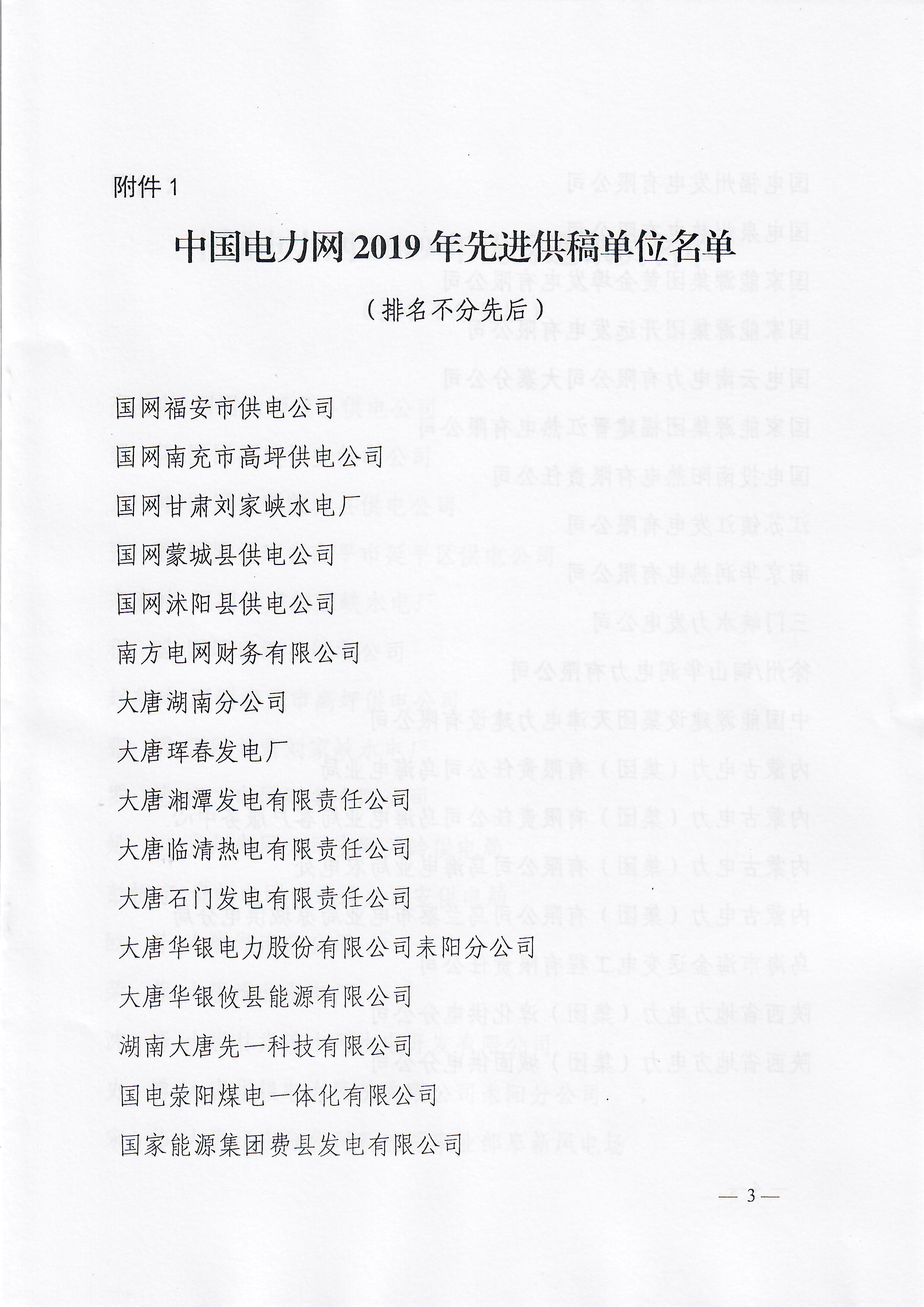 附件: 1.中國電力網(wǎng)2019年度先進(jìn)供稿單位名單