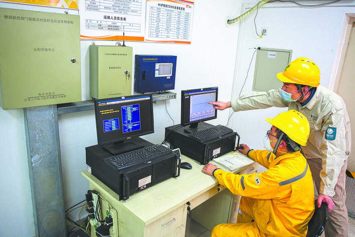 超低排放改造也被稱為“超凈排放”“近零排放”,是指對(duì)燃煤發(fā)電機(jī)組環(huán)保設(shè)施做進(jìn)一步提效改造,使其污染物排放水平達(dá)到燃?xì)鈾C(jī)組標(biāo)準(zhǔn),即用煤發(fā)電跟用天然氣發(fā)電的污染物排放水平相當(dāng)。按國家標(biāo)準(zhǔn),“十三五”期間,燃煤發(fā)電機(jī)組的二氧化硫、氮氧化物、煙塵三項(xiàng)主要污染物排放標(biāo)準(zhǔn)要分別從100毫克/立方米、100毫克/立方米、20毫克/立方米,壓縮到35毫克/立方米、50毫克/立方米、10毫克/立方米。改造是否到位,成效是否可靠,數(shù)據(jù)聯(lián)網(wǎng)工作是檢驗(yàn)達(dá)標(biāo)和政策落地的重要環(huán)節(jié)。近日,記者走進(jìn)江蘇發(fā)電企業(yè)環(huán)保數(shù)據(jù)匯總分析的“中樞”,一探全省火力發(fā)電企業(yè)節(jié)能減排成效。