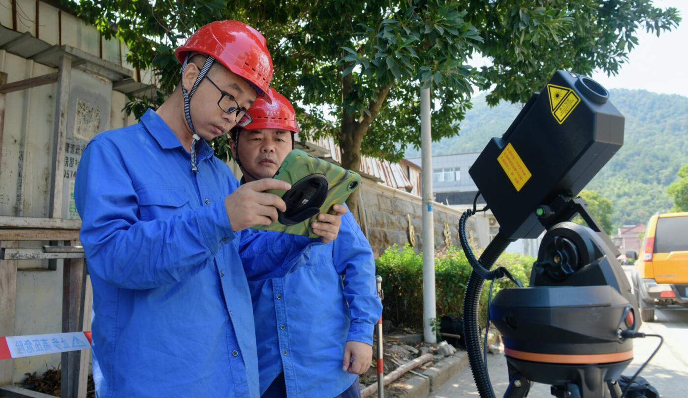 情況危急,接到消缺指令后,輸配電運(yùn)檢中心員工顧金苗、方俊杰、張?jiān)懒⒓磾y帶大功率遠(yuǎn)程激光異物清除器(又稱(chēng):激光炮)前往現(xiàn)場(chǎng)。