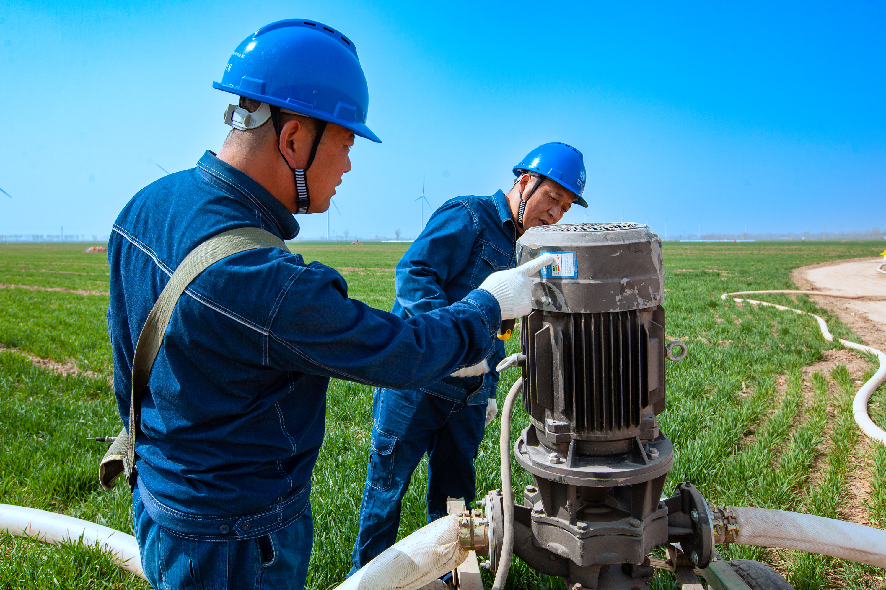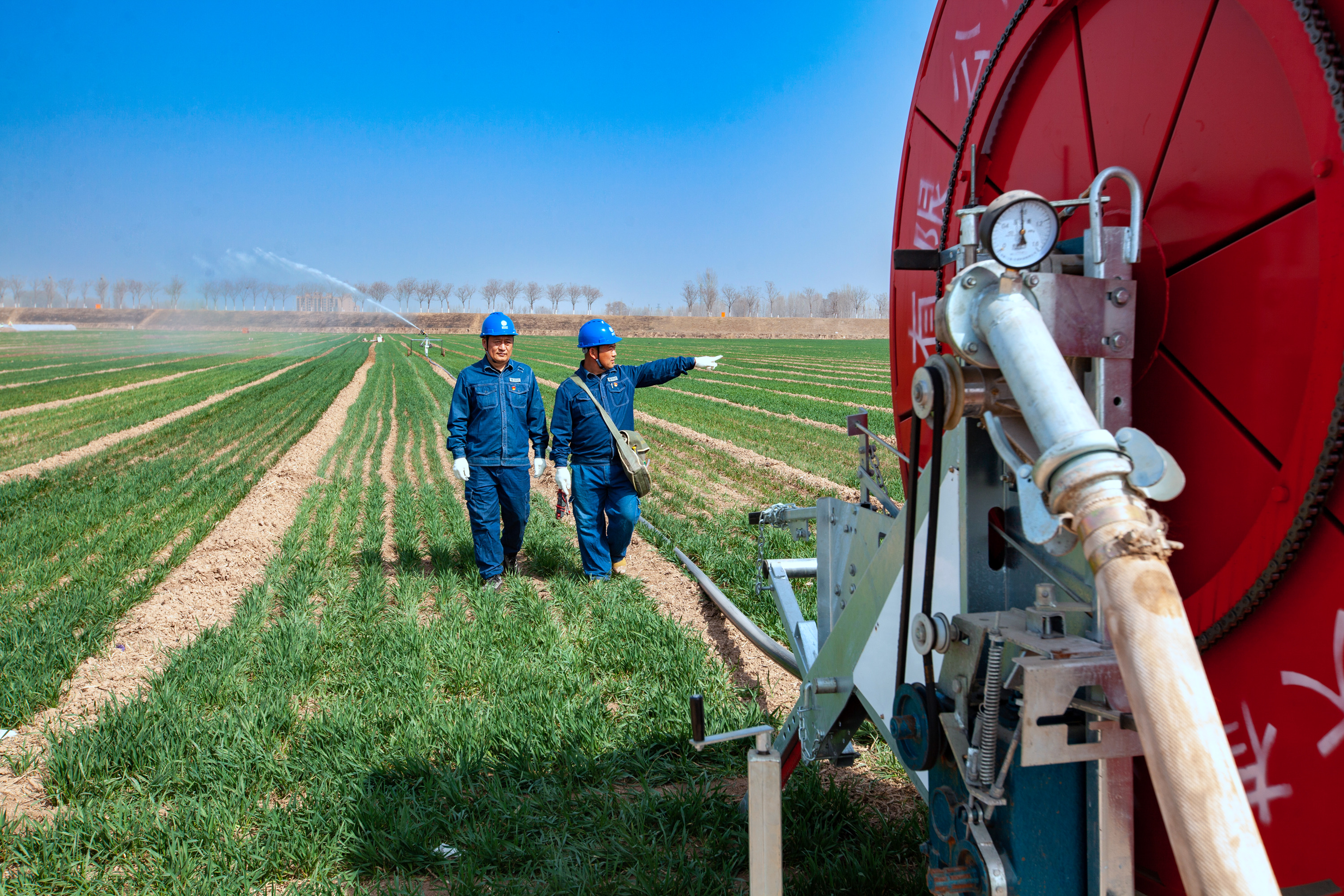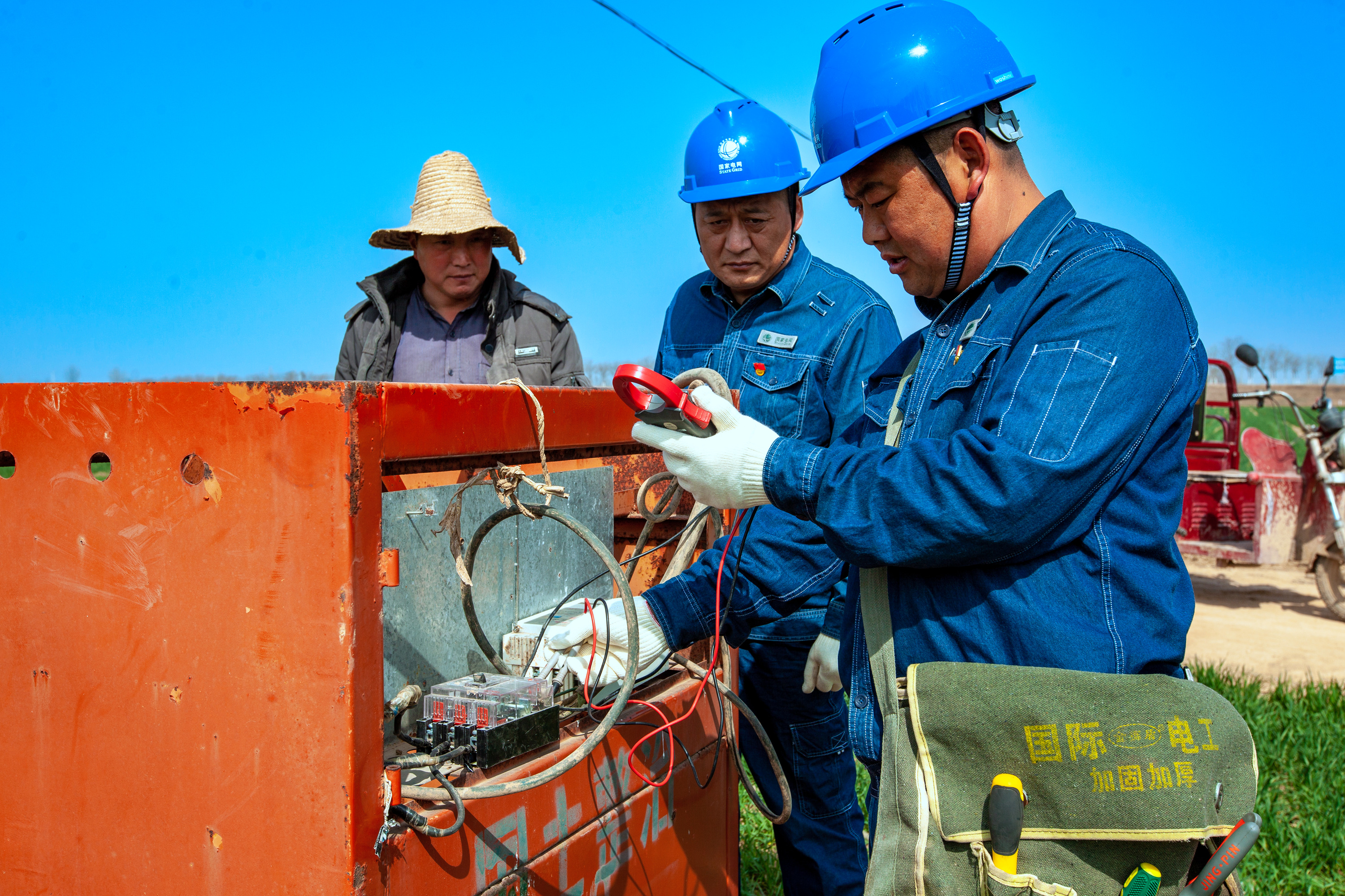 3月9日,在河南滑縣四間房鎮(zhèn)麥田里,國網(wǎng)滑縣供電公司工作人員呂衛(wèi)兵、韓記偉在檢查農(nóng)田機井和噴灌裝置用電設(shè)備時,發(fā)現(xiàn)一處安全隱患,馬上糾正并對客戶進(jìn)行用電安全知識告知。