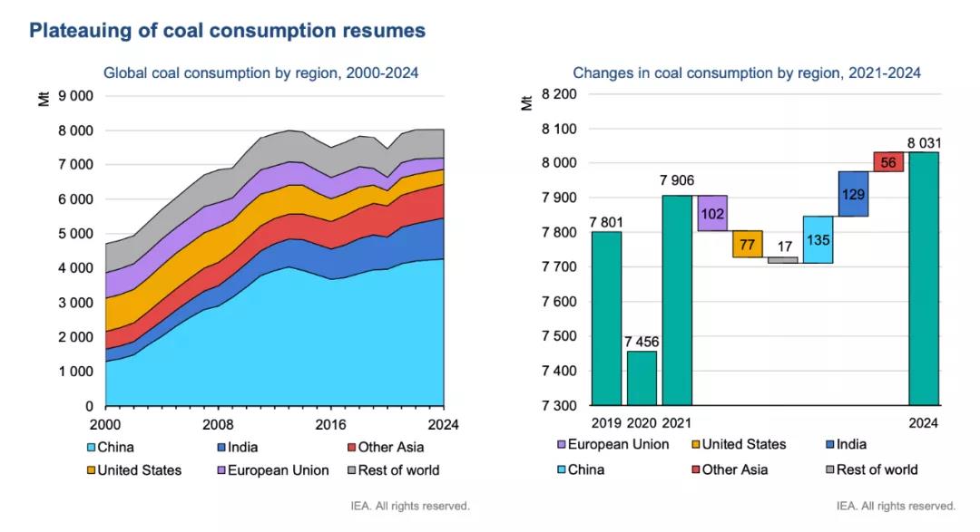 根據(jù)國(guó)際能源署(IEA)的最新報(bào)告,2021年全球煤炭發(fā)電量達(dá)到10350太瓦時(shí)(TWH),比上年增長(zhǎng)9%,達(dá)到歷史新高。然而,煤炭在2021年全球發(fā)電量中所占的份額為31%,低于2007年36%的高點(diǎn)。在美國(guó)和歐盟,煤炭發(fā)電量預(yù)計(jì)在2021年增加近20%,但總量不會(huì)達(dá)到2019年的水平。相比之下,印度和中國(guó)的增長(zhǎng)率分別為12%和9%,這兩個(gè)國(guó)家的煤炭發(fā)電量將達(dá)到創(chuàng)紀(jì)錄的水平??紤]到全球工業(yè)生產(chǎn)的反彈,全球煤炭需求總量預(yù)計(jì)將在2021年增長(zhǎng)6%,接近2013年的創(chuàng)紀(jì)錄水平。