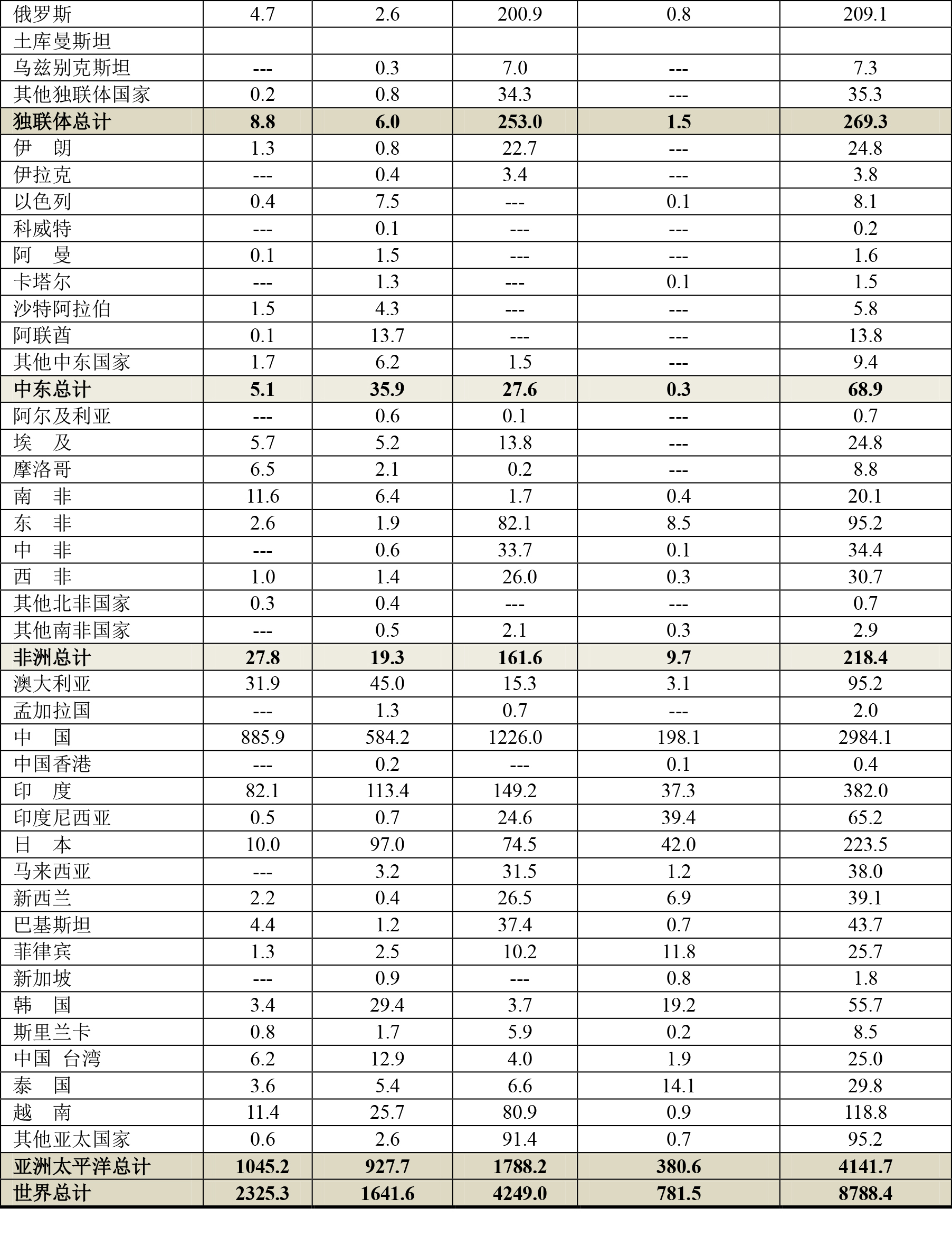 ▲ 風電場發(fā)電最多的地區(qū)是亞太地區(qū)達1045.2 TWh,占全球總量2325.3 TWh的45%。其中中國885.9 TWh,占全球總量2325.3 TWh的38.1%,居全球第一;美國429.5TWh,占全球總,18.5%;俄羅斯僅為4.7TWh.