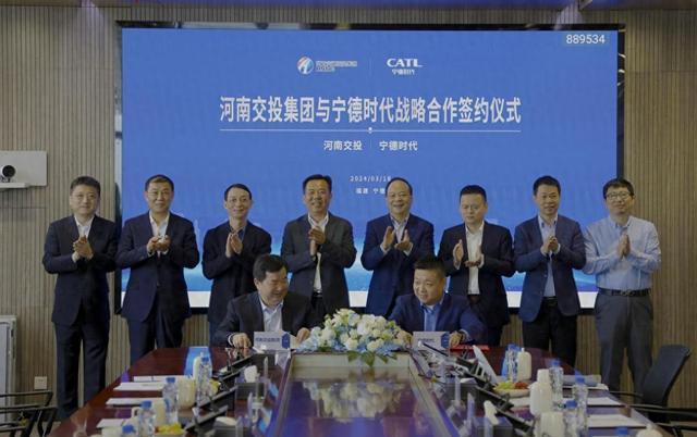 3月18日上午,河南交通投資集團(tuán)與寧德時代新能源科技股份有限公司在福建省寧德市簽署戰(zhàn)略合作框架協(xié)議,共建綠色交通能源補給生態(tài),推動形成河南交投“高速公路+新能源”發(fā)展新格局。河南交投集團(tuán)黨委書記、董事長付磊,集團(tuán)黨委委員、工會主席、副總經(jīng)理代建偉,省紀(jì)委監(jiān)委駐集團(tuán)紀(jì)檢監(jiān)察組組長、黨委委員王保月,黨委委員、副總經(jīng)理袁凍雷;寧德時代創(chuàng)始人、董事長、CEO曾毓群,監(jiān)事會主席、生態(tài)委員會主席、區(qū)域管理總裁吳映明等見證簽約儀式,交投集團(tuán)黨委委員、副總經(jīng)理馬沉重與寧德時代區(qū)域總經(jīng)理陳凌分別代表雙方簽約。