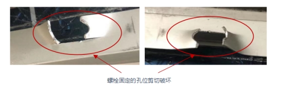當(dāng)遭受大風(fēng)等外界壓力時(shí),組件的破壞都是從最薄弱點(diǎn)開始的,即連接處的C面。這在兩家主流廠家的風(fēng)洞測試中,得到了同樣的驗(yàn)證結(jié)果:組件失效均為螺栓固定的孔位剪切破壞。因此,提高最薄弱點(diǎn)的承載力,是提高組件抗載荷能力最有效和最經(jīng)濟(jì)的方式。