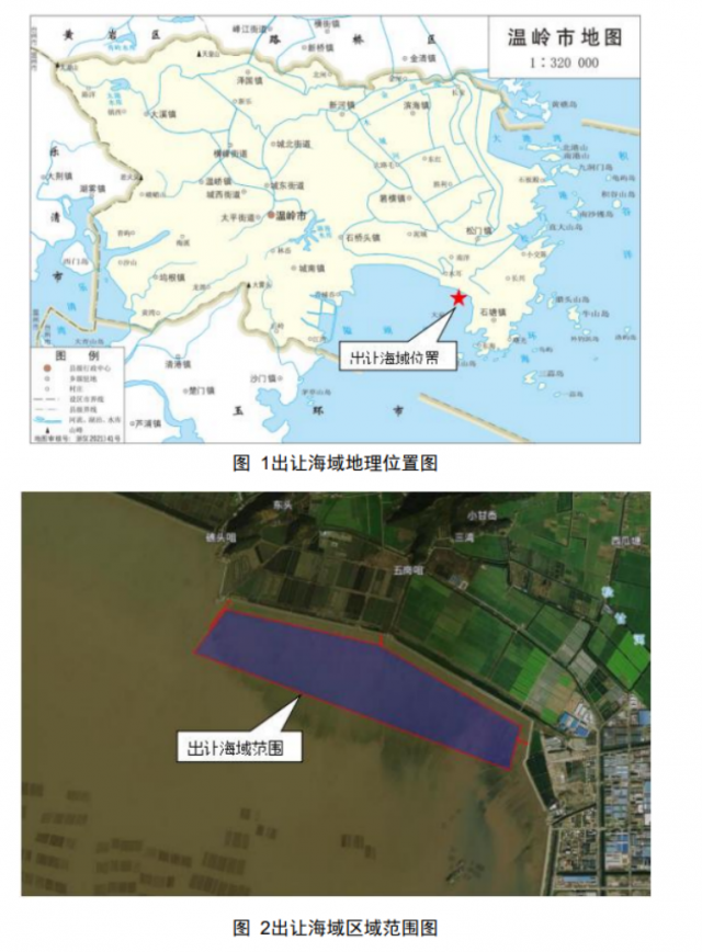 根據(jù)拍賣公告,本次拍賣標(biāo)的為溫嶺市東部松門漁光互補光伏電站項目海域使用權(quán),出讓海域位于溫嶺市東南部蒼山門外塘海域,距離溫嶺市區(qū)約15km。出讓海域北鄰松門南片海塘,東面松門齊門塘,西面、南面為開敞式海域。