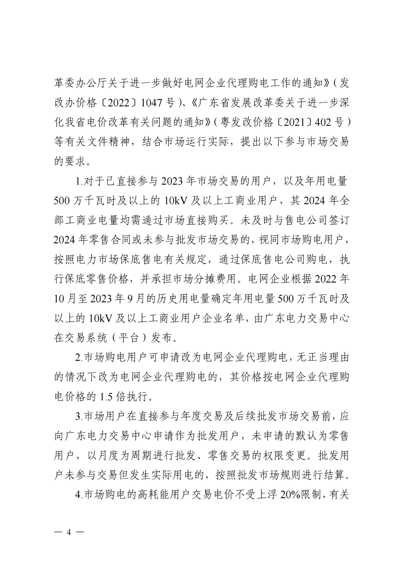11月21日,《廣東省能源局 國家能源局南方監(jiān)管局關(guān)于2024 年電力市場交易有關(guān)事項(xiàng)的通知》(粵能電力函〔2023〕704號)文件發(fā)布,對廣東省2024年電力市場交易有關(guān)事項(xiàng)作出如下安排: