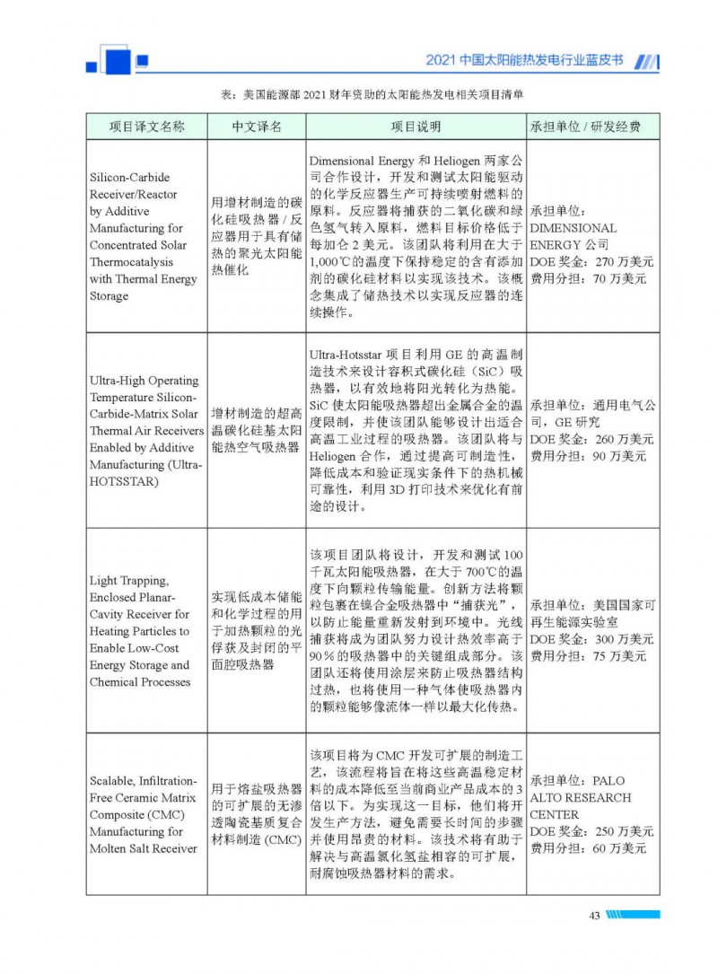 原標題:光伏行研報告:《2021中國太陽能熱發(fā)電行業(yè)藍皮書》