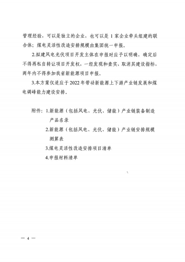 需要強(qiáng)調(diào)的是,產(chǎn)業(yè)配套項(xiàng)目允許企業(yè)單獨(dú)申報(bào),也可由1家企業(yè)牽頭以聯(lián)合體形式申報(bào),煤電改造配套則由集團(tuán)統(tǒng)一申報(bào)。項(xiàng)目開發(fā)主體申報(bào)確認(rèn)后不得私自轉(zhuǎn)讓項(xiàng)目開發(fā)權(quán),否則將取消指標(biāo),2年內(nèi)不得參與省內(nèi)新能源項(xiàng)目開發(fā)。