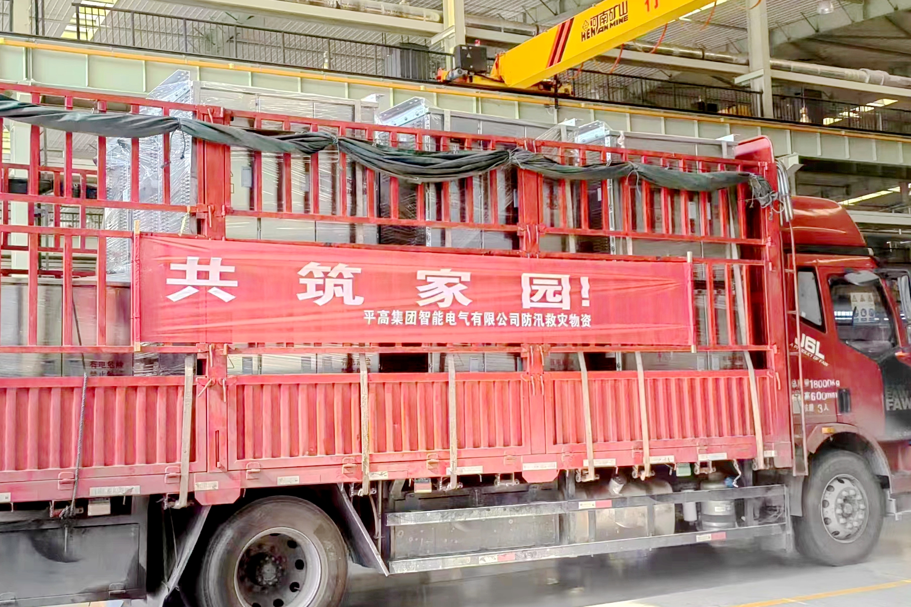 平高集團(tuán)智能電氣立即召開專題會議,部署應(yīng)急救援工作,以保證用最快的速度把應(yīng)急救援物資給客戶送達(dá)。結(jié)合生產(chǎn)計(jì)劃制定24小時值班安排,8月4日下午,經(jīng)過兩個晝夜的不懈拼搏,在全體干部員工、相關(guān)方的通力配合下,第一批馳援河北抗汛救災(zāi)電力物資順利發(fā)運(yùn)、連夜趕赴災(zāi)區(qū)。截至8月10日上午,156套10千伏柱上變壓器臺成套設(shè)備全部發(fā)運(yùn)完畢,為災(zāi)區(qū)電力設(shè)備重建提供支撐和保障。
