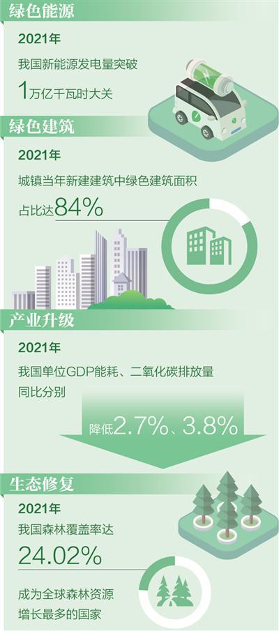 推進(jìn)建筑、交通等領(lǐng)域低碳轉(zhuǎn)型。積極發(fā)展綠色建筑,推進(jìn)既有建筑綠色低碳改造,2021年全國(guó)城鎮(zhèn)新建綠色建筑面積達(dá)到20多億平方米。加大力度推廣節(jié)能低碳交通工具,新能源汽車產(chǎn)銷量連續(xù)7年位居世界第一,保有量占全球一半。
