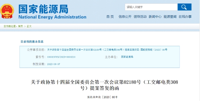 國家能源局在對十四屆全國人大一次會議第7024號建議的答復(fù)中指出:
