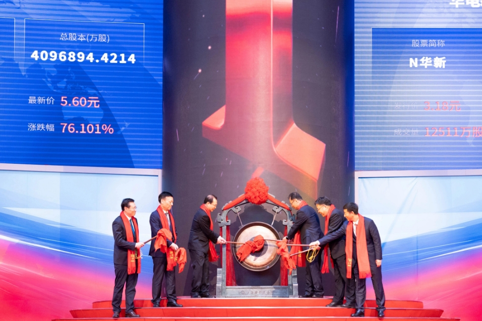 伴隨著響亮的鑼聲,中國華電集團(tuán)有限公司旗下新能源旗艦平臺——華電新能源集團(tuán)股份有限公司(股票簡稱:華電新能,股票代碼:600930)今日正式登陸上海證券交易所主板,標(biāo)志著這家國內(nèi)規(guī)模最大的新能源發(fā)電企業(yè)成功駛?cè)胭Y本市場的廣闊藍(lán)海,開啟了以資本賦能綠色發(fā)展的嶄新征程。掛牌上市當(dāng)日開盤價5.5元/股,收盤價7.18元/股,漲幅125.79%,上市首日市值近3000億元,成為A股市值最高的新能源發(fā)電行業(yè)上市公司。