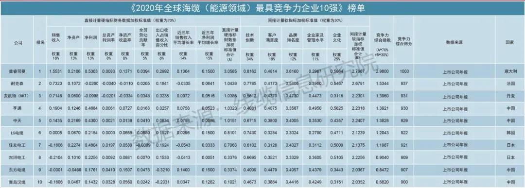 全球海纜(能源領(lǐng)域)最具競爭力企業(yè)10強榜單第四位