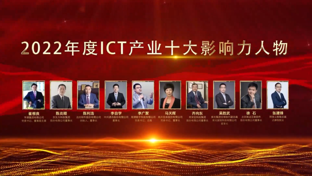 大會組委會通過對我國ICT產(chǎn)業(yè)的深入調(diào)研、綜合評審,推選出一批年度優(yōu)秀成果和典型人物,并在大會上揭曉,以展示我國ICT產(chǎn)業(yè)最新發(fā)展成果,樹立行業(yè)新標(biāo)桿,展現(xiàn)企業(yè)新風(fēng)采。公司董事長陳利浩與中興通訊董事長李自學(xué),航天信息黨委書記、董事長馬天暉,奇安信董事長齊向東等行業(yè)代表獲評 “2022年度ICT產(chǎn)業(yè)·十大影響力人物”。
