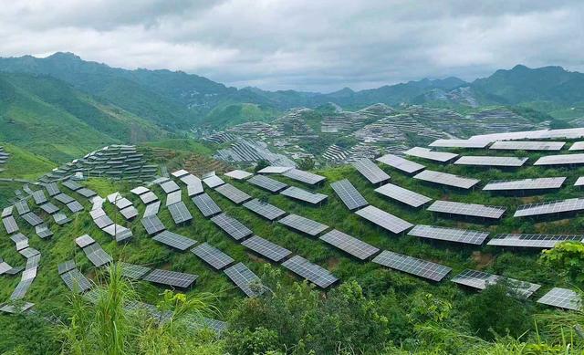 俯瞰黔中大地,不計(jì)其數(shù)的光伏板沿著山勢(shì)鋪滿了千溝萬(wàn)壑,在陽(yáng)光下匯成“藍(lán)色海洋”;一座座大型風(fēng)力發(fā)電機(jī)矗立山巔,巨大的葉片隨風(fēng)而舞,向電網(wǎng)源源不斷輸送綠電。