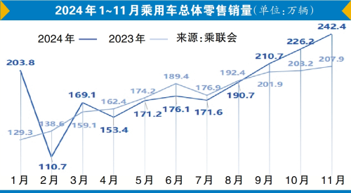 7月新能源汽車滲透率首次突破50%大關(guān),提前實(shí)現(xiàn)了國家設(shè)定的目標(biāo);11月14日,中國新能源汽車的產(chǎn)量首次突破年度1000萬輛,是全球首個(gè)新能源汽車年度產(chǎn)量達(dá)到1000萬輛的國家;在“兩新”(大規(guī)模設(shè)備更新和消費(fèi)品以舊換新)政策的強(qiáng)力拉動下,我國乘用車產(chǎn)銷11月首次突破了300萬輛……