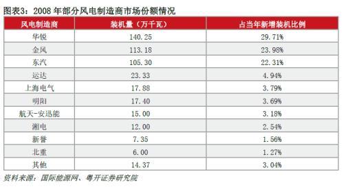 乘著風電行業(yè)快速發(fā)展的契機,國內領頭風電制造商占有巨大市場份額。以彼時的風電龍頭企業(yè)華銳科技為例,2008年華銳裝機新增140.25萬千瓦,占據(jù)了當年全國新增裝機的29.8%。