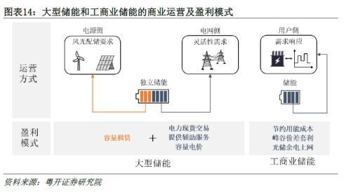 成本下降的同時,大儲和工商業(yè)儲能的盈利模式也日益清晰,大儲可通過共享租賃、現(xiàn)貨市場套利、提供輔助服務和獲取容量電價盈利,工商業(yè)儲能通過峰谷價差套利以及節(jié)約用能成本盈利。